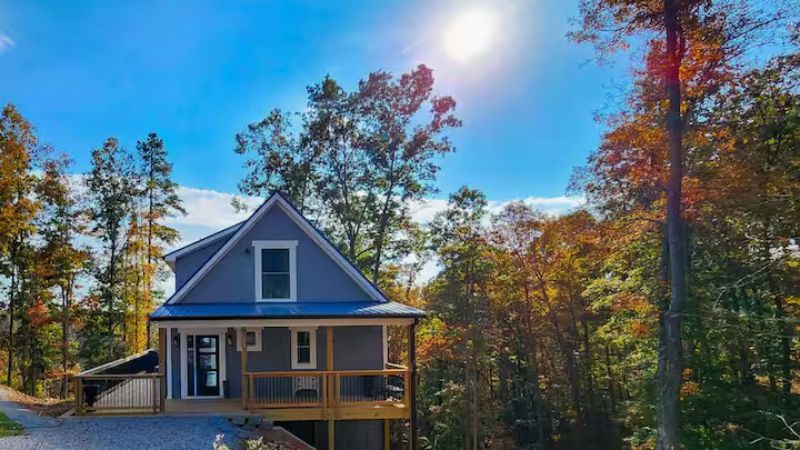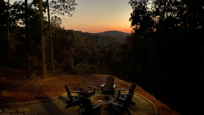 Our cabin is quite unique to say the least, starting with our favorite space, located under the deck is that CHILL SPOT. Gather to have a few cocktails, play games, and hide from the elements while still being outdoors. Solar string lights with brighten the area after dark.